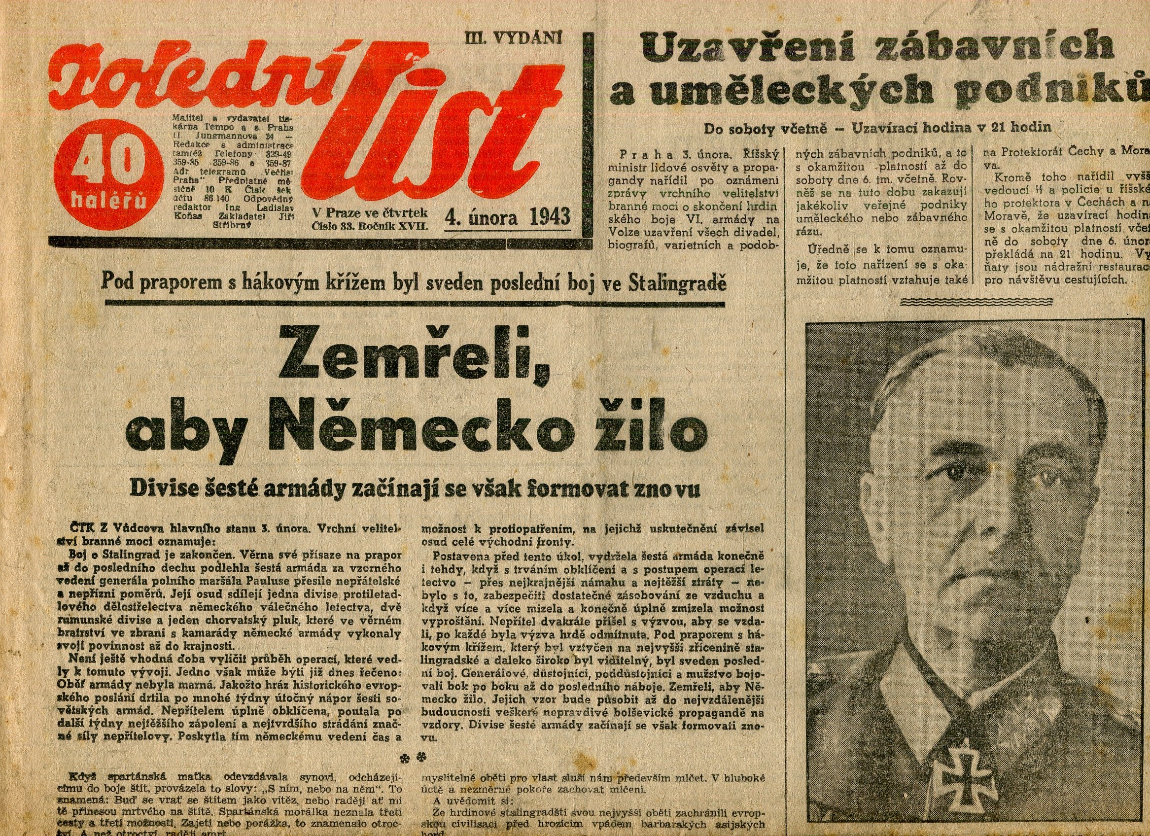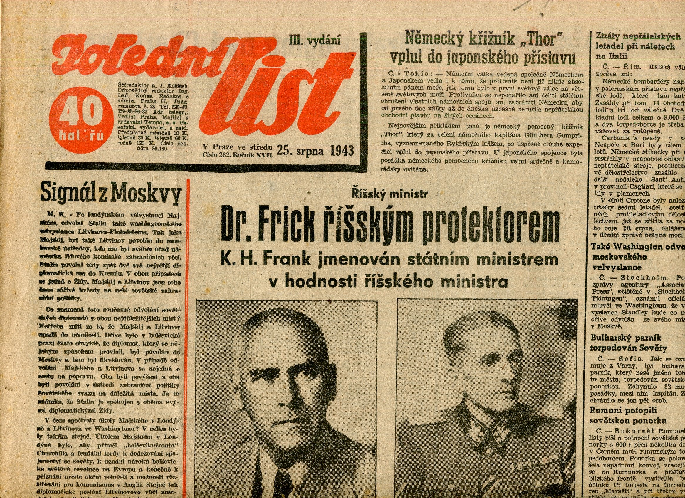 Velmi dobrý stav. Noviny jsou lehce zažloutlé