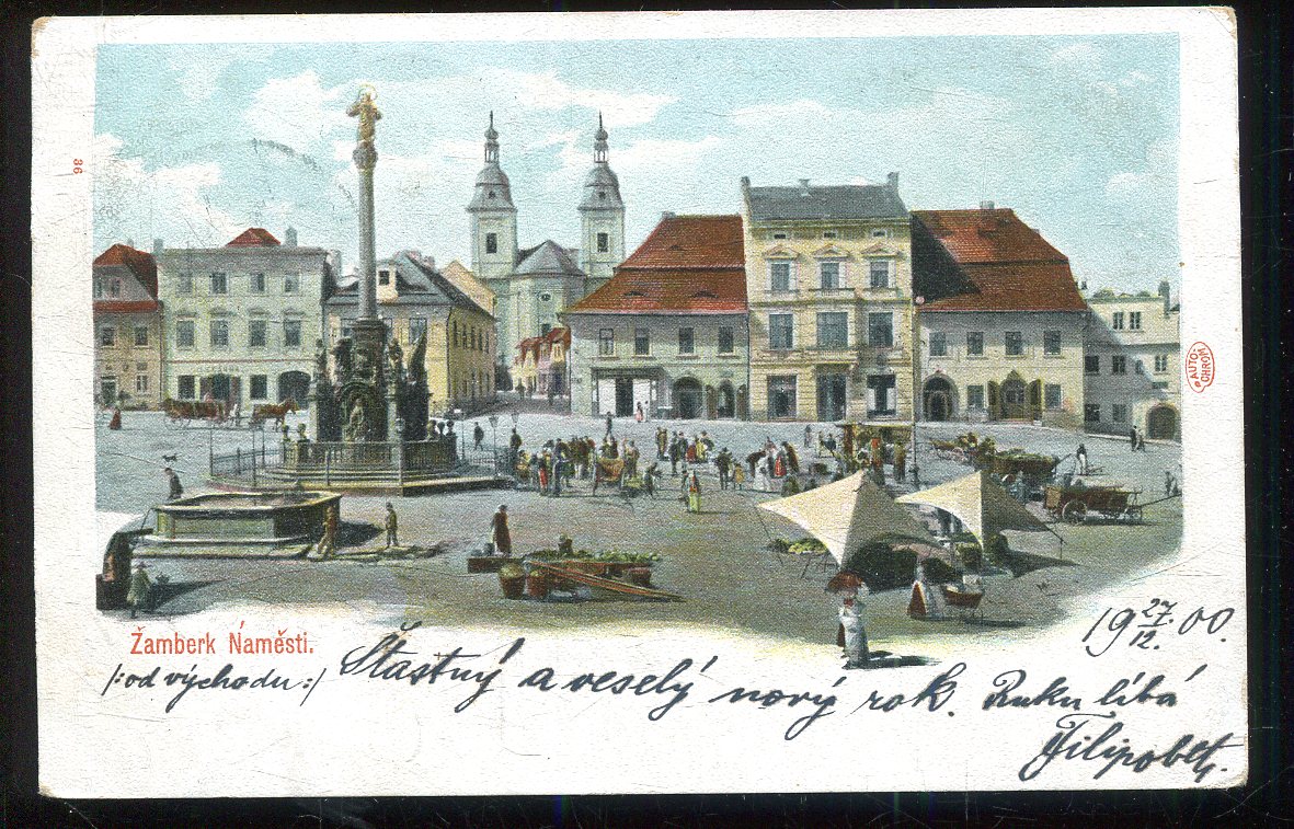 Stará pohlednice, prošlá se zn. (malý formát, cca 9 x 14 cm ).