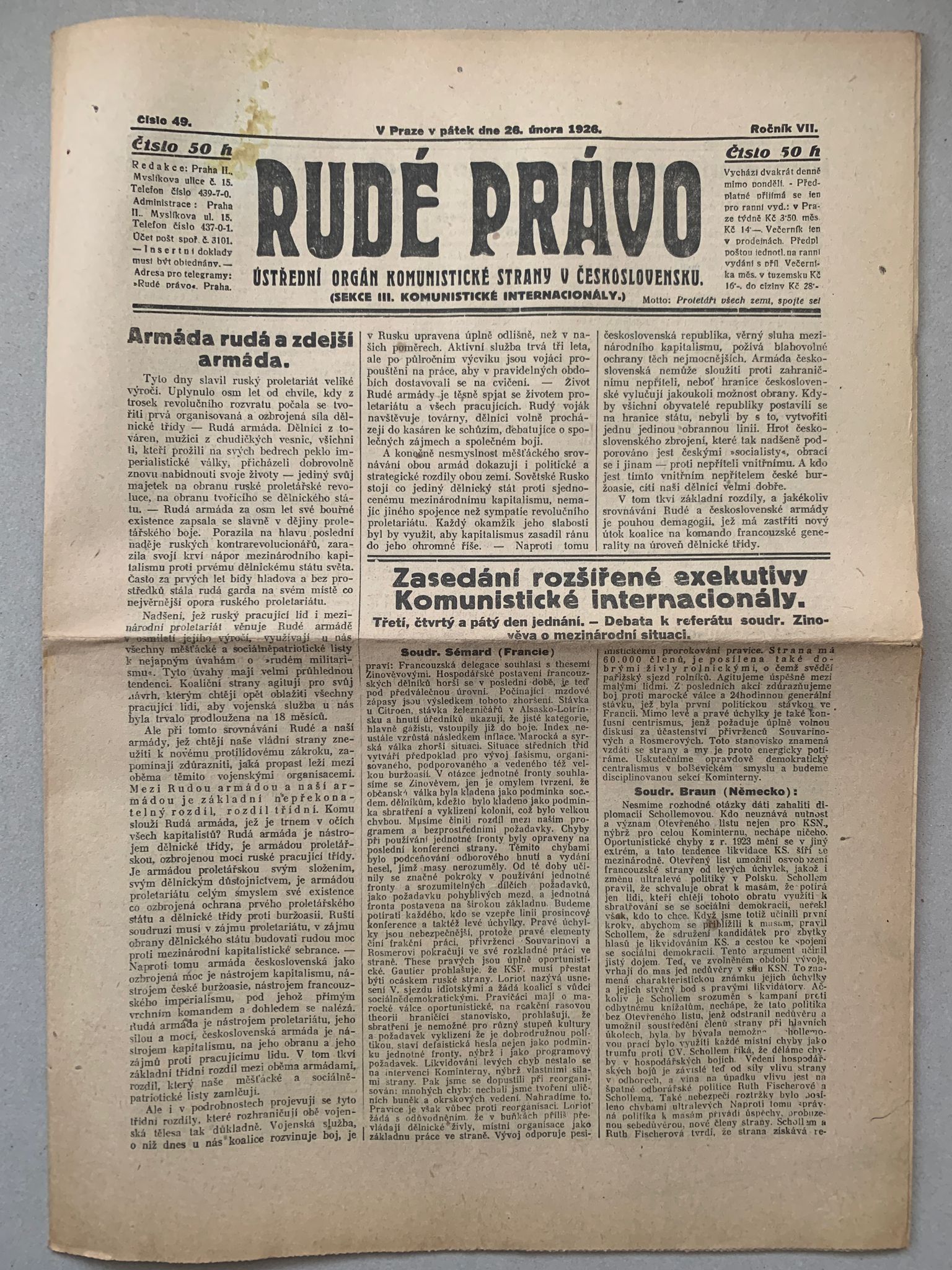 Staré noviny, volné složky, formát A3, přeloženo na A4. Stran 8