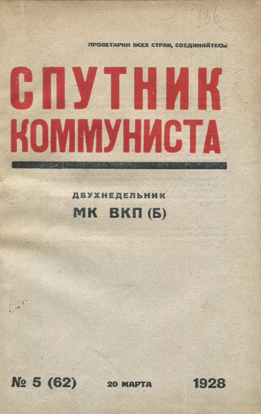 Sputnik kommunista, 1928, č. 5 [časopis; SSSR; Sovětský svaz; Rusko; komunismus; Спутник коммуниста]