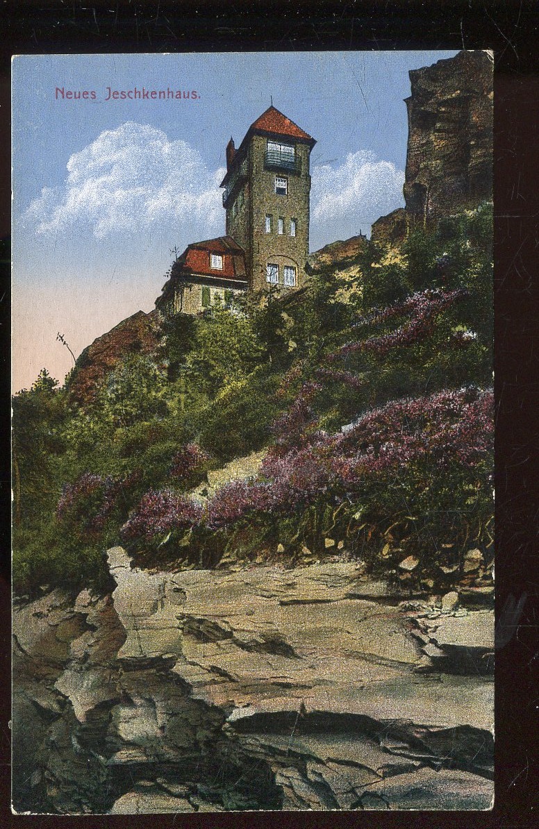 Stará pohlednice, prošlá se zn. - ta stržena i s částí papíru (malý formát, cca 9 x 14 cm..