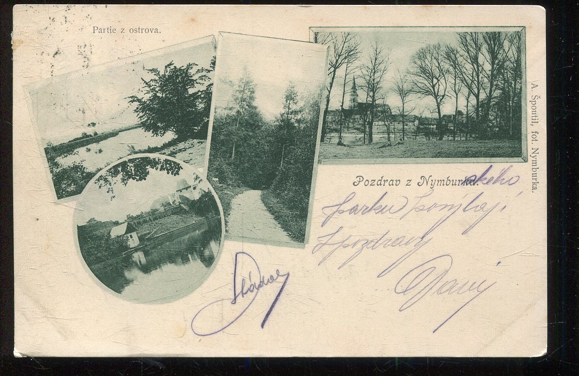 Stará pohlednice, prošlá se zn. (malý formát, cca 9 x 14 cm ).