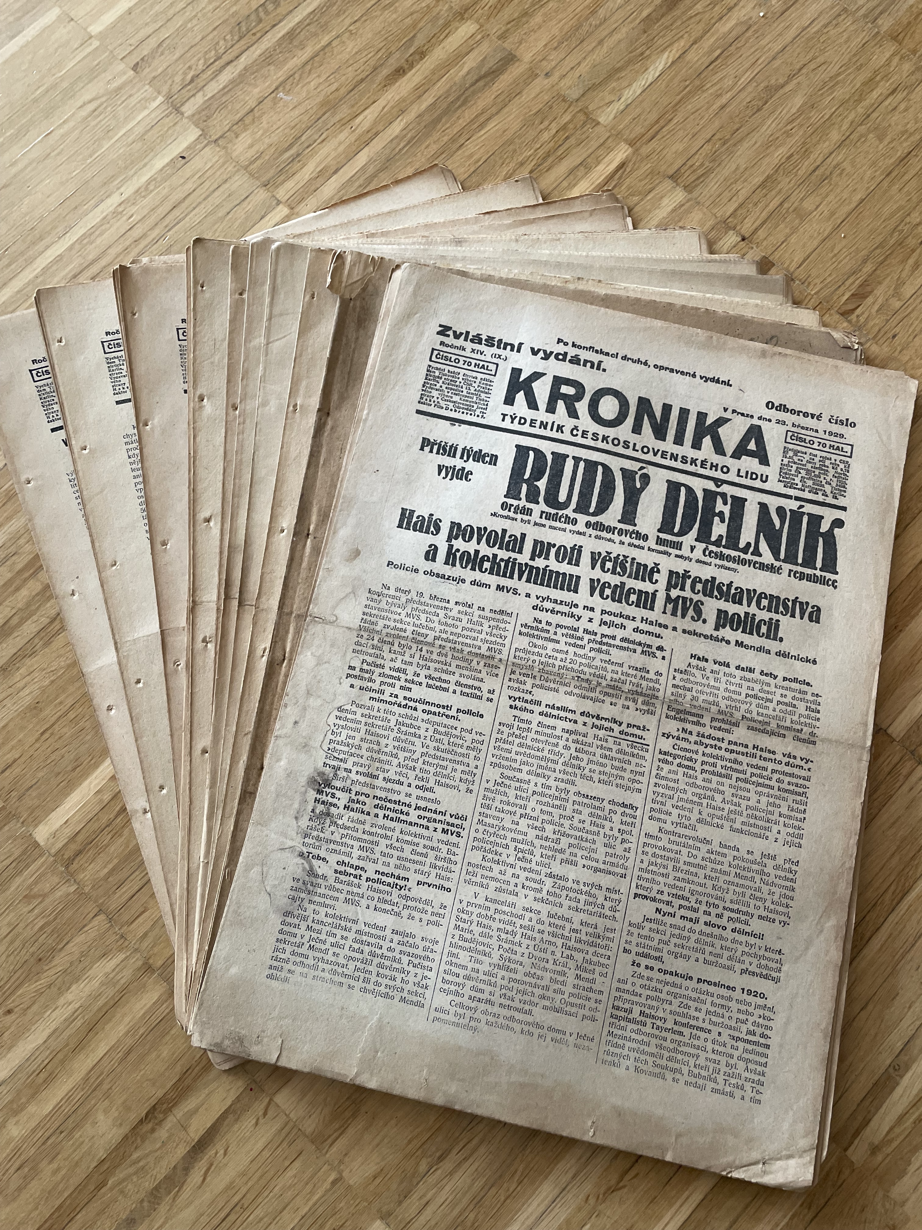 Přehnuté složky, každé číslo cca 6 stran rozměry cca: 28 x 38,5 cm.