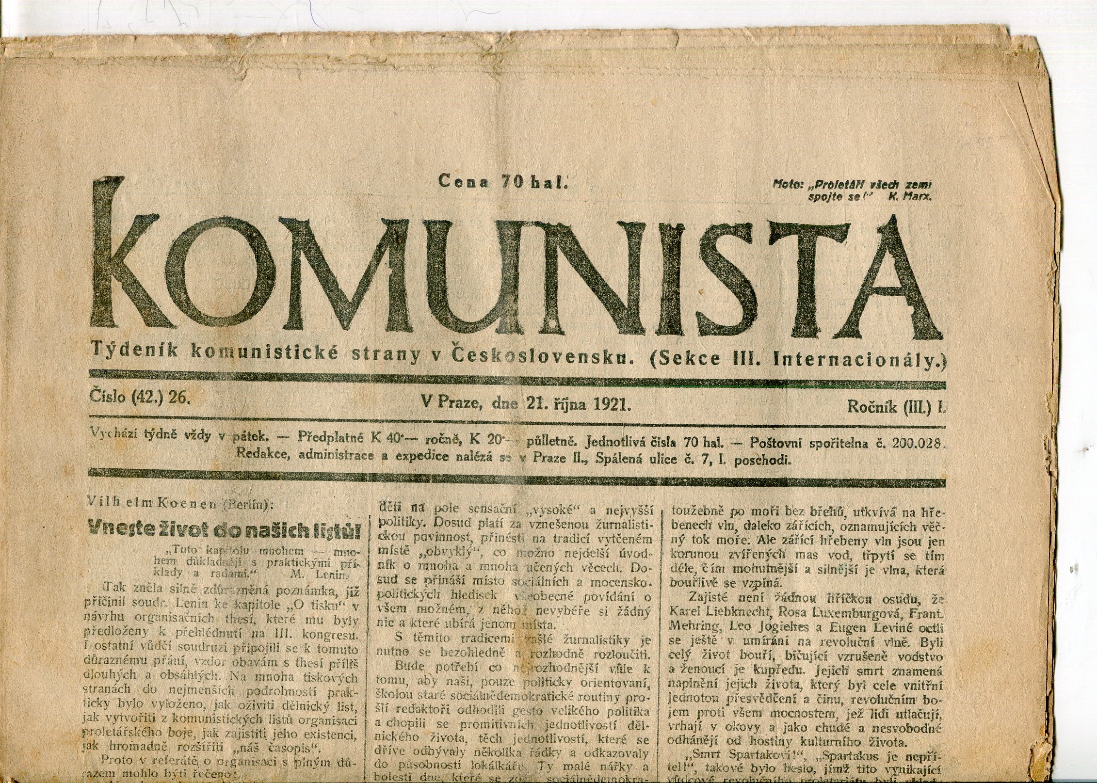 Dobrý stav, natržená obálka.