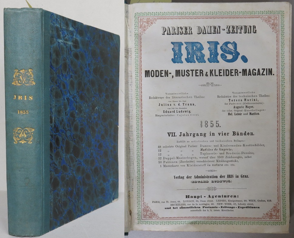 Stuttgart: Engelhorn & Hochdanz 1853, polokožená dobová vazba se zlaceným hřbetem, mramorované desky, 384 stran s 12 kolorovanými litografiemi (móda), velké 8° (16 x 22,5 cm)