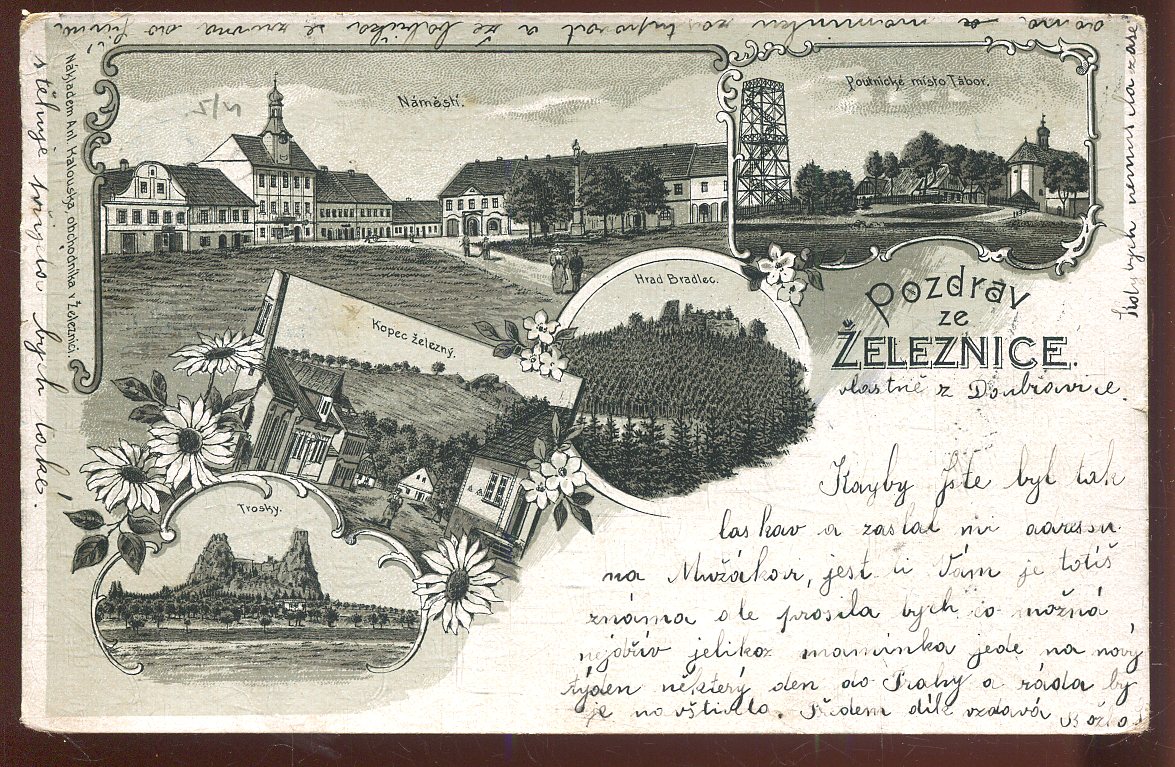 Stará pohlednice, prošlá se zn. (malý formát, cca 9 x 14 cm ).