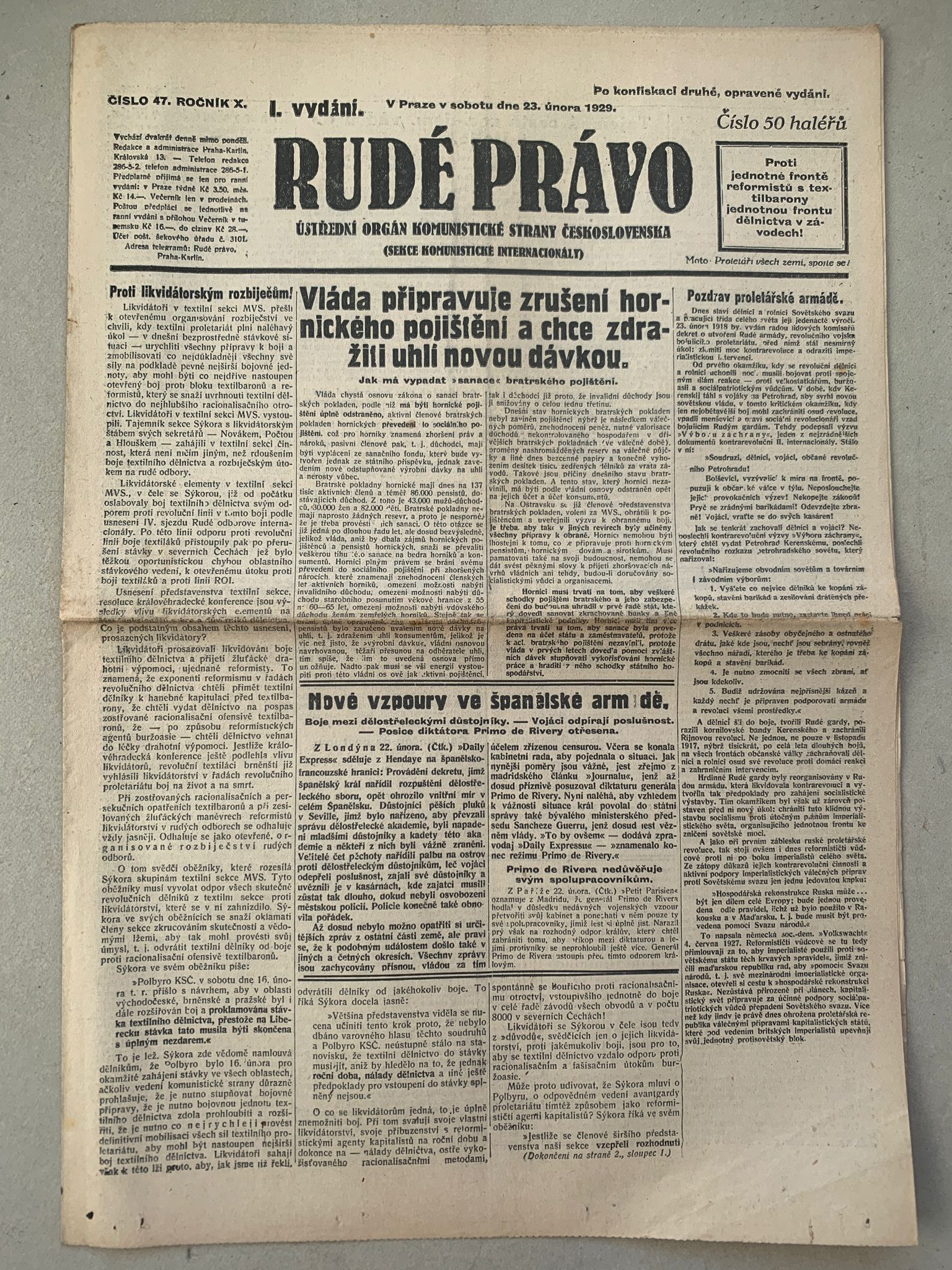 Staré noviny, volné složky, formát A3, přeloženo na A4. Stran 8