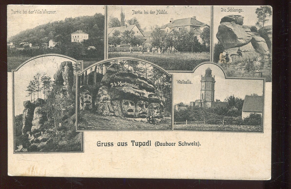 Stará pohlednice, prošlá se zn. - ta stržena (malý formát, cca 9 x 14 cm ).